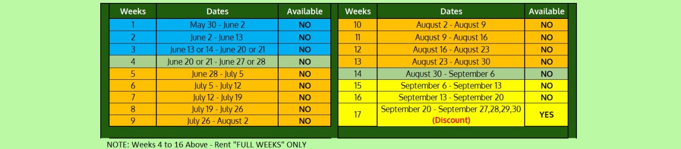 Weekly Rental is from Saturday to Saturday in Prime Summer Weeks!